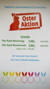 | Geöffnet / Gesperrt: | von 08.00 bis 19.50 Uhr ab Tee 1 | Geöffnet / Gesperrt: | Geöffnet! Nur Mattenabschläge! |